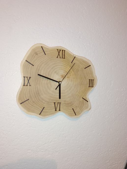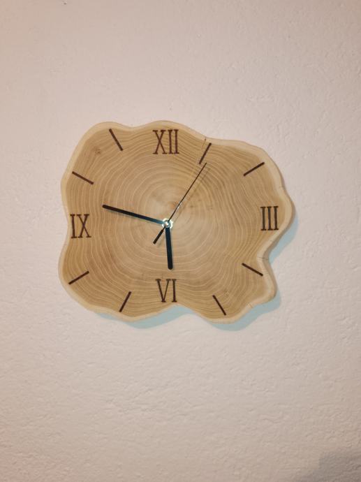 Drveni sat, ručni rad, pirografija. Mogućnost crtanja slike po želji.