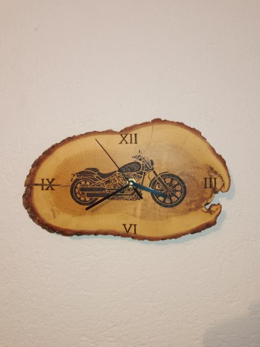 Drveni sat hrast, ručni rad, pirografija. Mogućnost crtanja slike po želji.