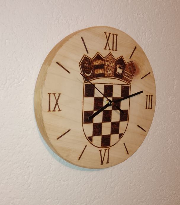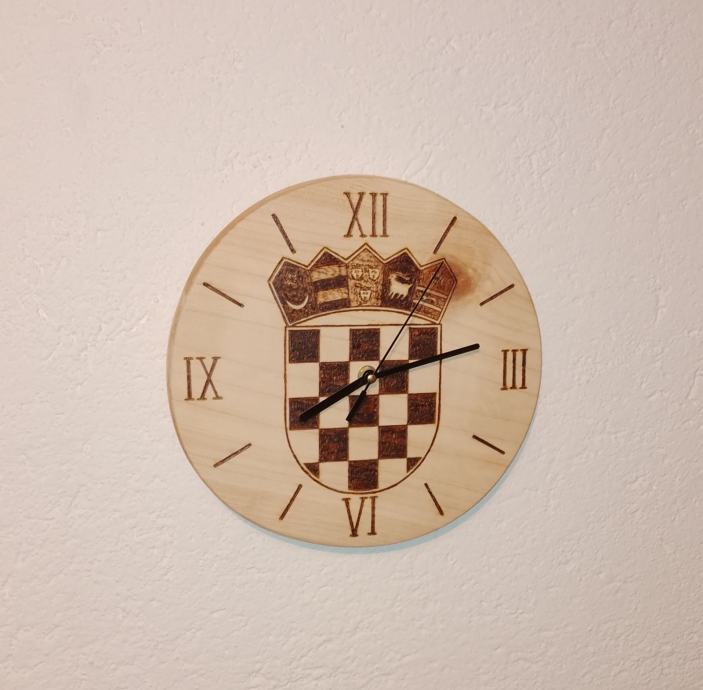 Drveni sat ariš, ručni rad, pirografija. Mogućnost crtanja slike po želji.