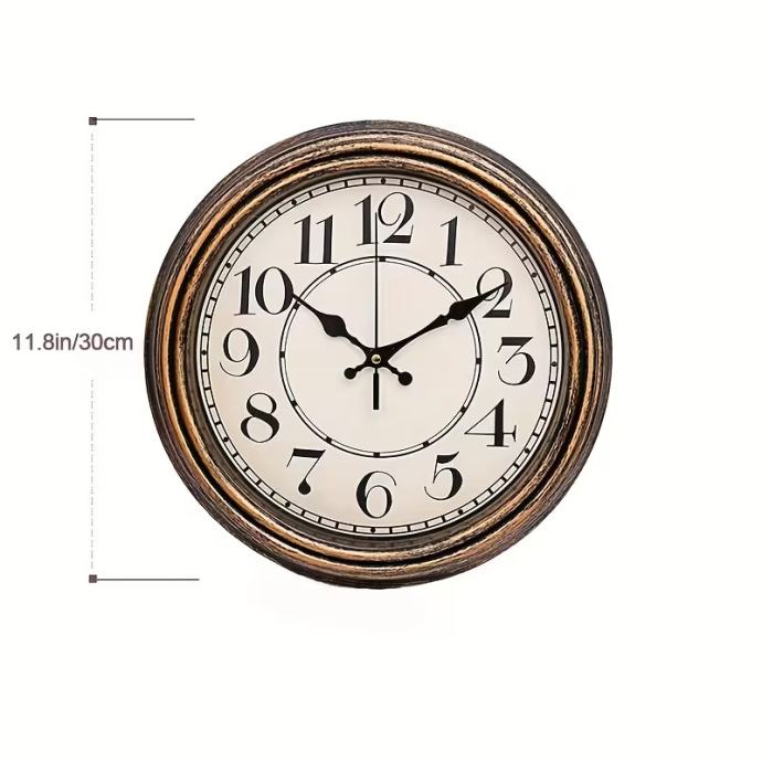 Elegantni vintage brončani zidni sat od 29,97 cm - tihi, ne otkucava