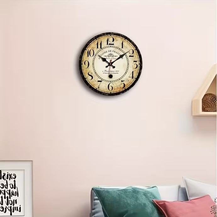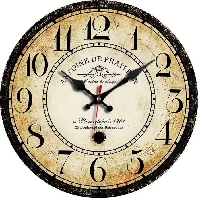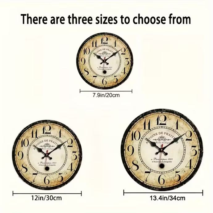 JFHT Francuski vintage zidni sat s rimskim brojevima - Veliki bež i istrošeni drveni brojčanik, crne kazaljke, pariški (Montmartre/Notre-Dame) - Rustikalni seoski dekor, naljepnica s francuskim tekstom, poklon za kućni ured, funkcionalni sat