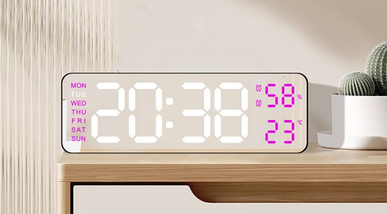 LED smart digitalni zidni sat velike brojke i temperaturna stanica sa efektom ogledala