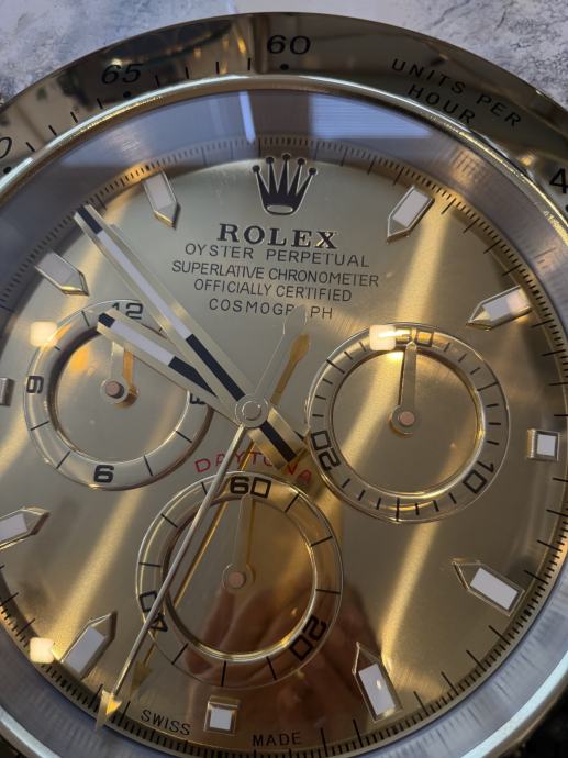ROLEX DAYTONA zidni sat,metalno kuciste,nov zapakiran.Ostale modele satova pogledajte pod ostalim mojim oglasima.Promjer sata 34+34.