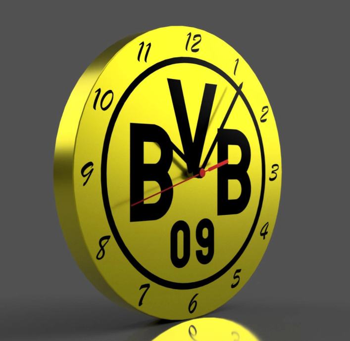Sat Borussia Dortmund. 3d printan sa mehanizmom vrhunske kvalitete! Sat je veličine 30 cm