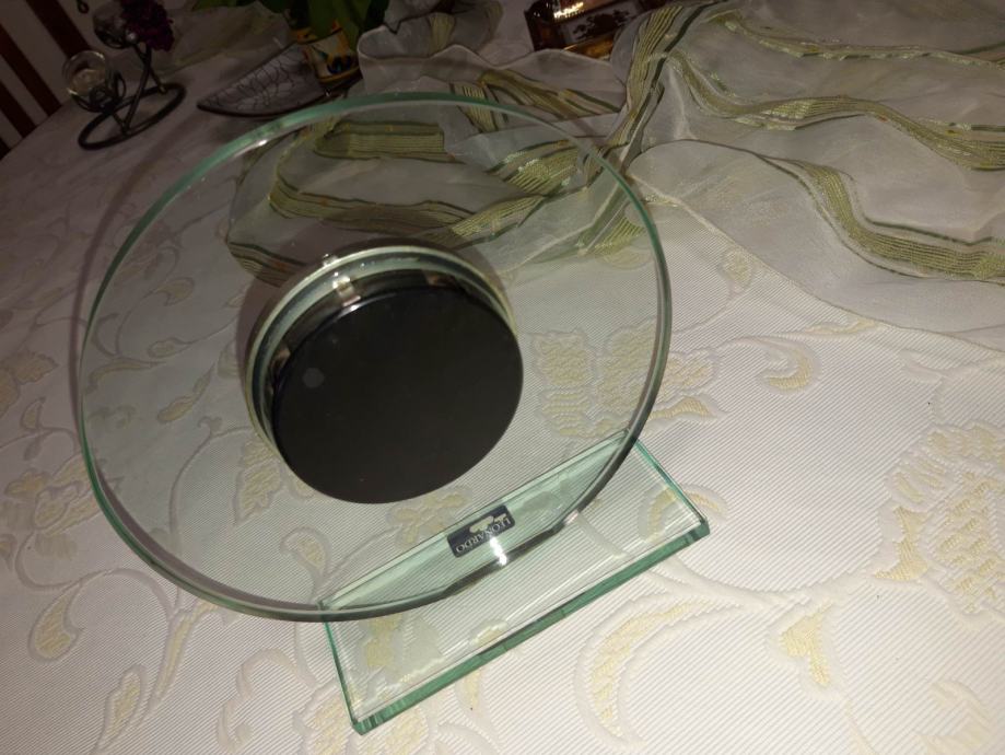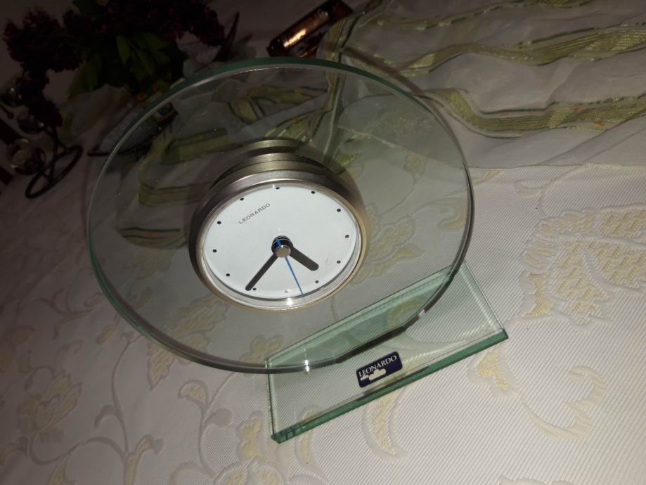 Okrugli sat, staklo sa zelenim odsjajem, visina 18cm, promjer 18cm, nema oštećenja ni ogrebotina, radi na običnu bateriju. Osobno preuzimanje najsigurnija varijanta jer je staklo. Ovi sa uplatama u naprijed i kuririma neka me zaobiđu.