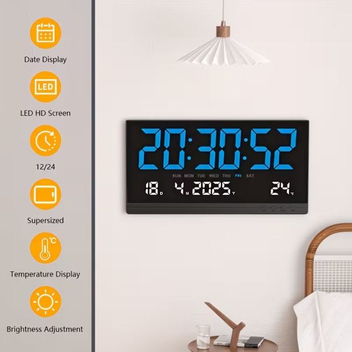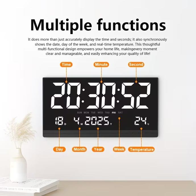 Veliki pametan digitalni zidni sat sa velikim brojkama sata