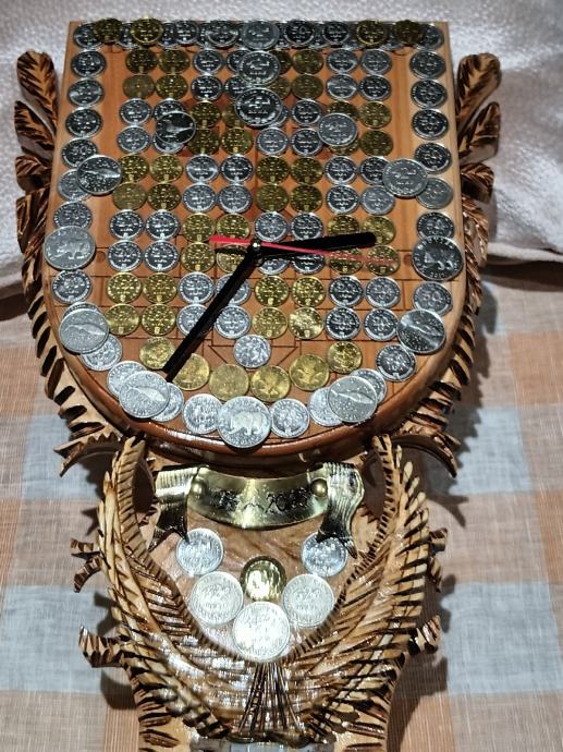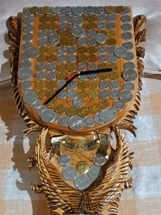 VELIKI ZIDNI SAT-KOVANICE KUNA I LIPA-RUČNI RAD MASIVNO DRVO-UNIKAT !!