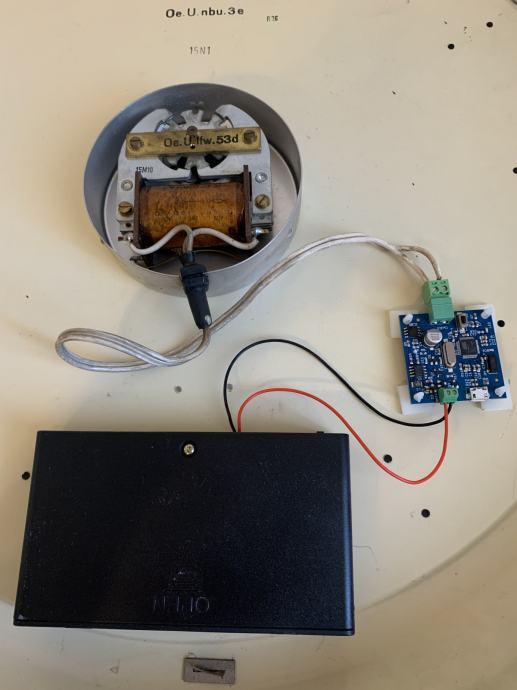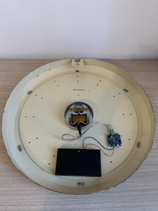 2021. godine je sat prerađen tako da radi na 8 AA baterija pri čemu mu je ugrađen davač impulsa finskog Hasseba čije se kašnjenje može namjestiti softverski žicom putem USB-a iz Windows 7/8. Sat radi na 24 V DC s bipolarnom izmjenom impulsa. Majstor koji je pogledao mehanizam kazao je da je pogon u odličnom stanju obzirom na dob. Sat kasni kako mu opada popunjenost baterije.