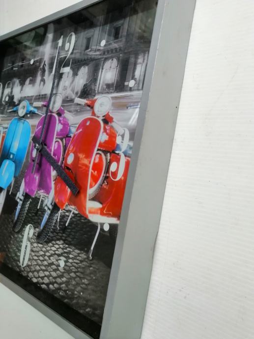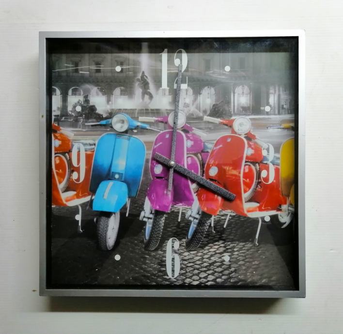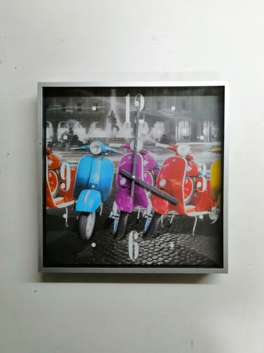 Vespa / Vespe dekorativni zidni sat veličine 28 x 28 x 4cm.
