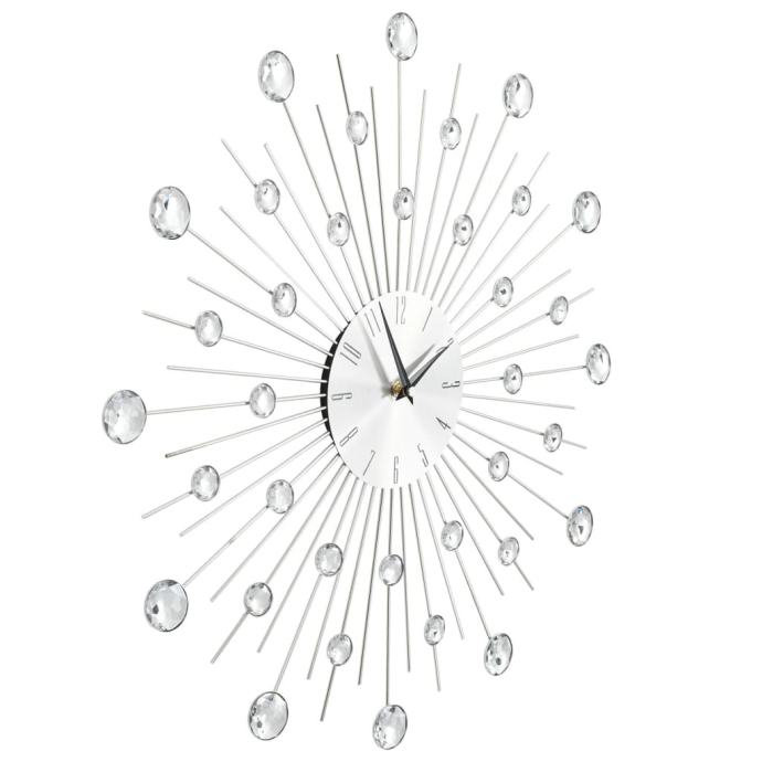 Sat ima čvrst aluminijski okvir i vrlo je izdržljiv. Ima predivni raspršeni dizajn posut sjajnim perlama koje pridonose elegantnom stilu sata. Opremljen visokokvalitetnim kvarcnim mehanizmom, sat je vrlo precizan u mjerenju vremenu. Zahvaljujući jasnim brojkama, sat se može točno očitati čak i s velikih udaljenosti. Može se lako objesiti na zid. Sat će vašem interijeru dati skladan i uredan izgled.