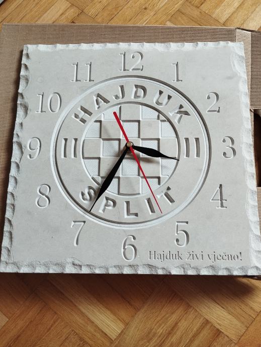 Zidni sat sa motivom grba Hajduka, izrađen u kamenu, nekorišten