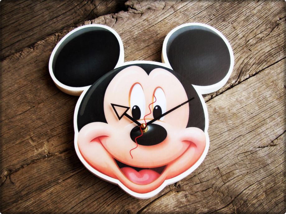 Zidni sat Mickey Mouse, dim. 29x28 cm, materijal - drvo debljine 1,8 cm. Nečujni satni mehanizam. Idealno za dječju sobu.