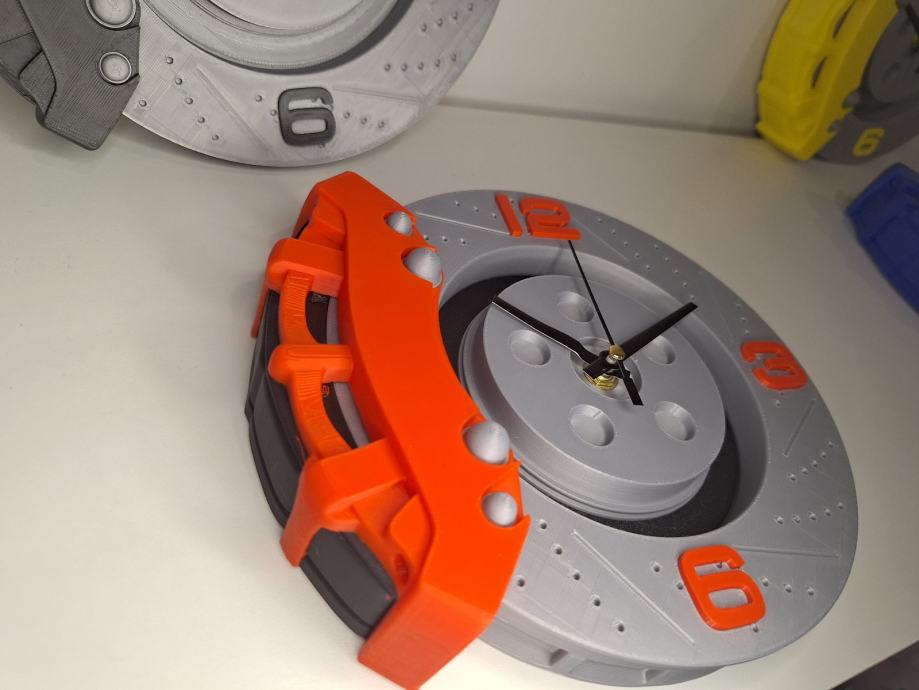 Prodajem dekorativni zidni sat u obliku kočionog diska s čeljustima, izrađene 3D printanjem. Odličan dodatak za garaže, radionice, urede ili kao poklon za ljubitelje automobila i mehanike.