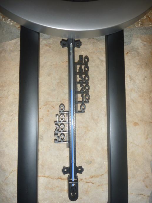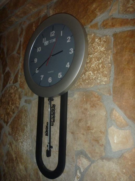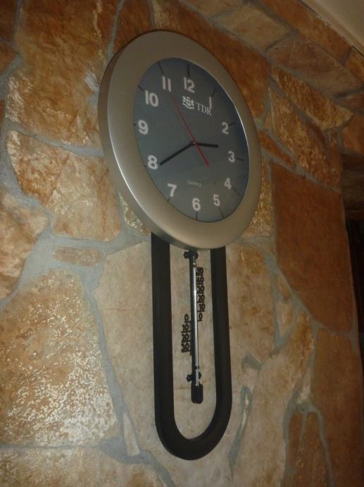 PRODAJEM ISPRAVAN ZIDNI SAT SA TERMOMETROM VISINA 67CM - ŠIRINA 35CM
