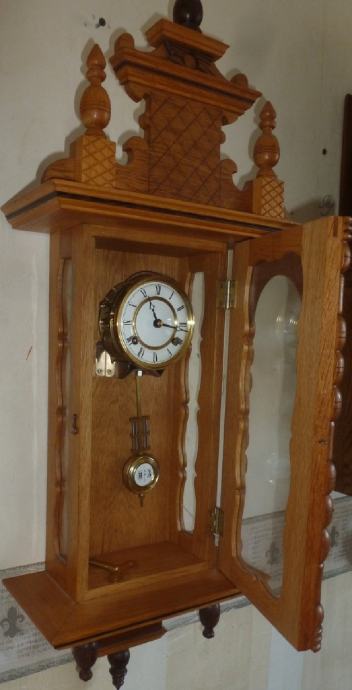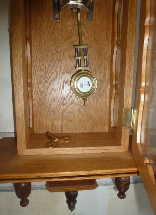 Prodajem zidni kutijasti sat s njihalom regulator 1970g iz Njemačke . Mehanički mehanizam s 8 dnevni pokretom. Prekrasan i upečatljiv zidni sat od bijele hrastovine koji dobro radi svoj posao i dobro udara, redovito servisiran i održavan što se vidi na fotografijama. Opruge su u bačvi kako i priliči kvalitetnom satu, dolazi s originalnim ključem za navijanje. Visina 77cm,š29 d12 težak je 5kg. Dostava Zagreb i Zagrebačka županija besplatna kao i poštom po cijeloj Hrvatskoj uključena u cijenu. Cijena 130 €