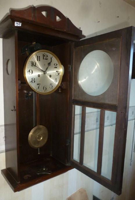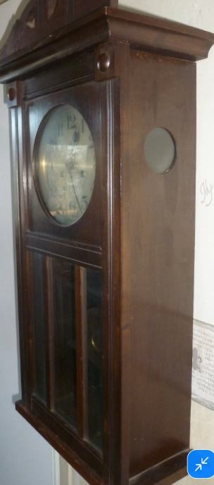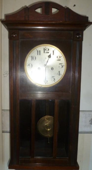 Prodajem zidni sat s njihalom iz 1920g drvo je od crnog hrasta.,mehanički mehanizam, navijanje je na 8 dana, gong na opruzi na puni i na pola sata, njemački, mali znakovi starenja, sat je servisiran i uredno radi. Opruge su u bačvi kako i priliči kvalitetnom satu, ima svoj original ključ. V: 75cm,š: 32cm,d:17,težina 6kg.Osobna dostava za Zagreb i Zagrebačku županiju, a ostatak hrvatske poštom na moj račun .