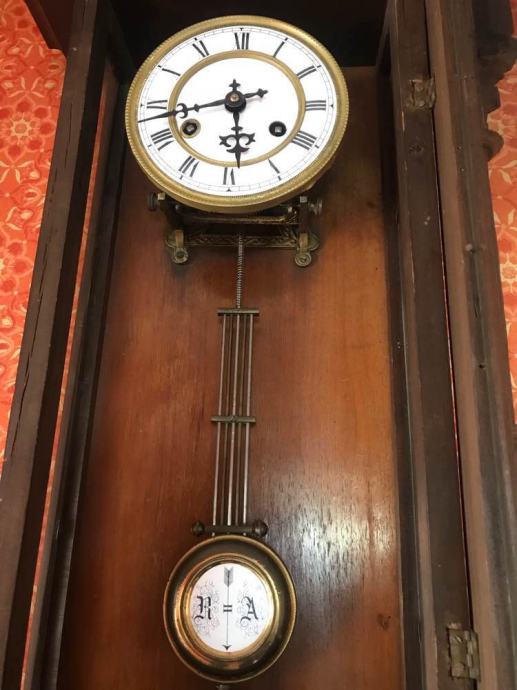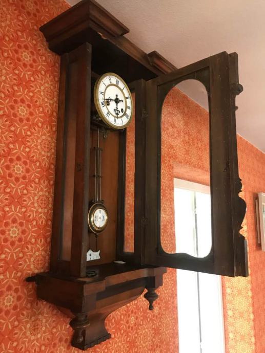 Prodaje se zidni starinski sat na navijanje. Sat otkucava svakih pola sata i na svaki puni sat. Sat je potpuno ispravan i ocuvan.