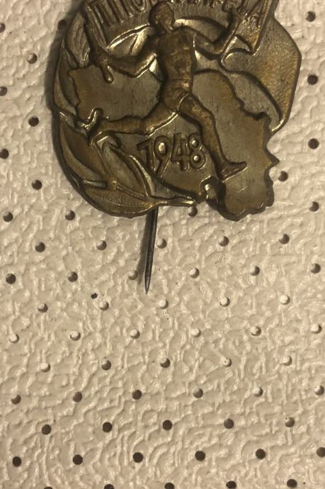 FNRJ - TITOVA ŠTAFETA 1948. - STARA LIMENA ZNAČKA NA UZDUŽNU IGLU