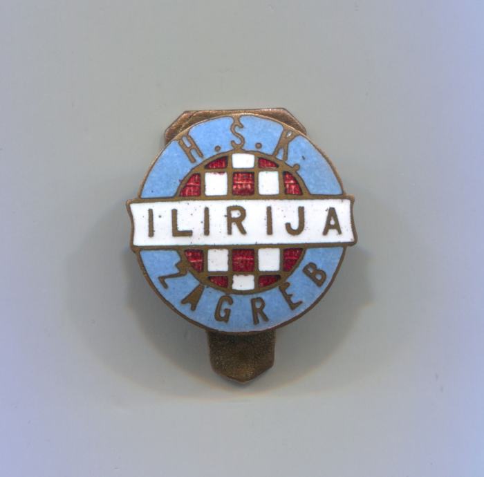 HŠK ILIRIJA ZAGREB - nogomet, značka, emajl, "na papuču", prije WW2