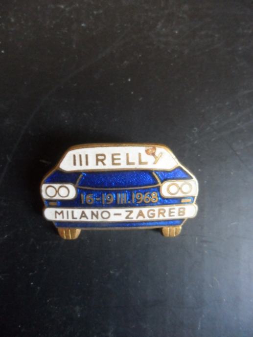 Stara značka s trećeg rellya Milano-Zagreb voženog od 16.-19.03.1968. godine