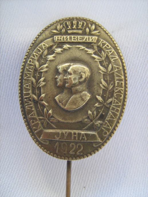 Ovalna svečana značka vjenčanja Kraljice Marije i Kralja Aleksandra,Juni 1922. godine staru 94 godine