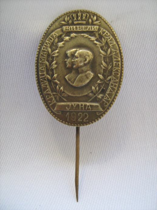 KRALJICA MARIJA I KRALJ ALEKSANDAR YUNA 1922. BADGE MARRIGE-ZNAČKA