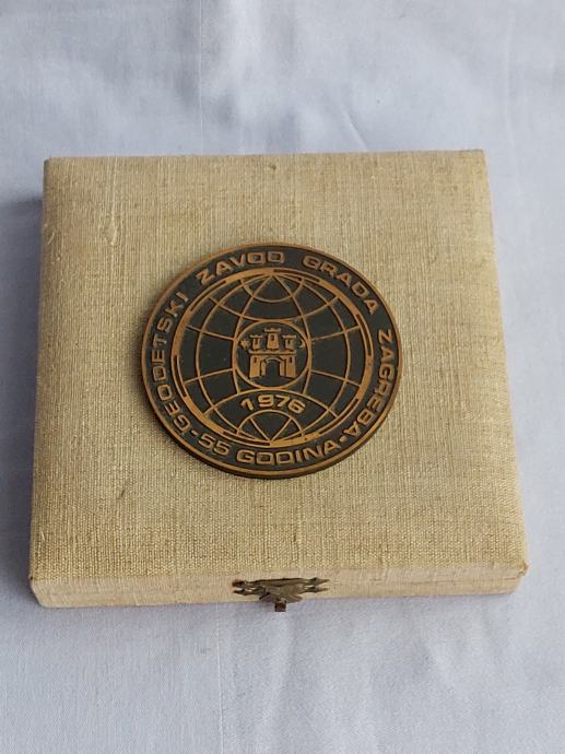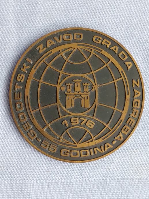 MEDALJA-PLAKETA. 55 god. Geodetski Zavod grada ZAGREBA. 1976 god. Mob