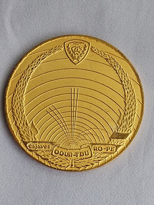 Medalja-PLAKETA. Rudi Čajavec. Zlatno-mat boje. Mob