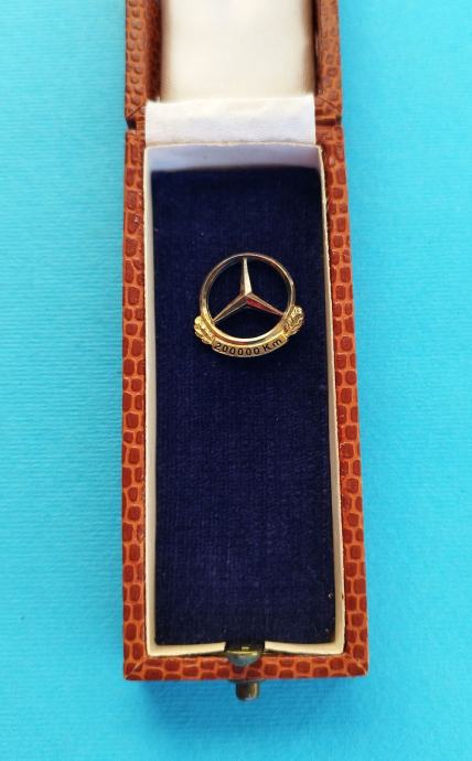 MERCEDES BENZ (200.000 km) stara službena srebrena značka u kutiji