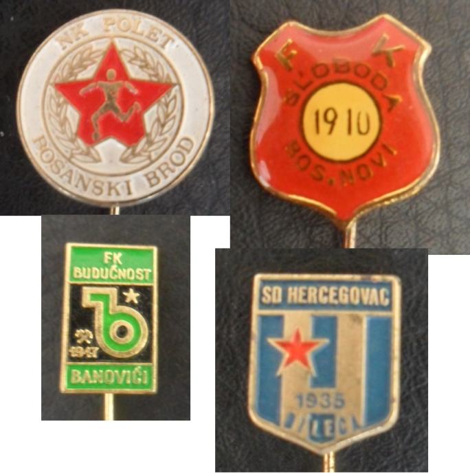 Stare značke FK Borac Banja Luka, RK Borac Banja Luka, FK Kozara Bosanska Gradiška, Iskra Bugojno, FK Bosna Visoko, Leotar Trebinje, NK Krajišnik Velika Kladuša, NK Polet Bosanski Brod, FK Budućnost Banovići, SD Hercegovac Bileća, FK Sloboda Bosanski Novi, NK Jedinstvo Bihać, OSD Jedinstvo Tuzla, NK Lokomotiva Mostar, FK Čelik Zenica, FK Željezničar Sarajevo, rukometni turnir šampiona Doboj, RŠD Velež Mostar, FK i RSD Sloboda Tuzla, FK i SD Drina Zvornik, svaka 5 eur/kom