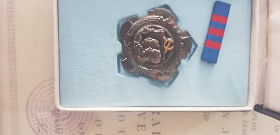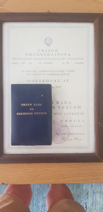 Orden rada sa srebrnim vijencem, i zastavicom s uramljenom potvrdom, i prigodnom kutijicom, sve u odličnom stanju, kao novo, prodajem