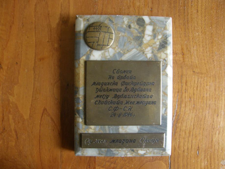 plaketa iz 1946 godine sporski susret željezničke mladeži ljubljana -