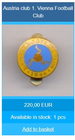 Stara originalna nogometna značka Prvi Bečki nogometni klub 1984 Vienna Football Club 1894.Promjer 20 mm.