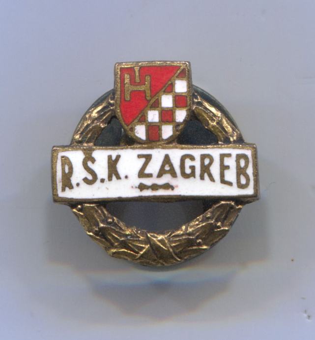 RŠK ZAGREB - nogomet, značka, emajl, "na papuču", prije WW2