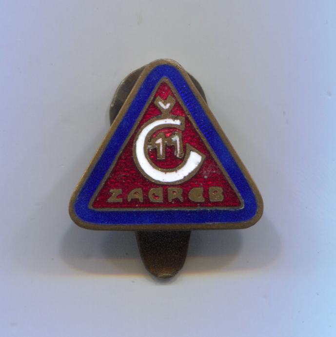 SK ČEŠKI 11 ZAGREB - nogomet, značka, emajl, "na papuču", prije WW2