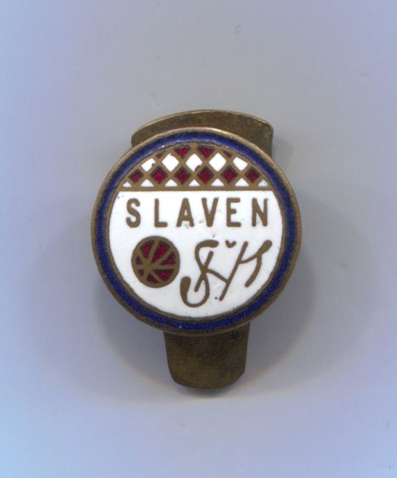 ŠK SLAVEN ZAGREB - nogomet, značka, emajl, "na papuču", prije WW2
