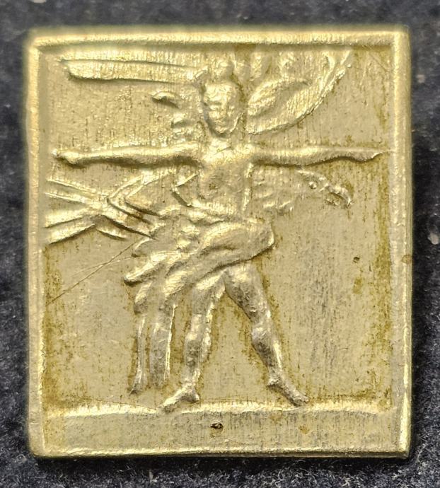 Značka je izrađena u prešanom i pozlaćenom mesingu, s originalnom iglom na poleđini.