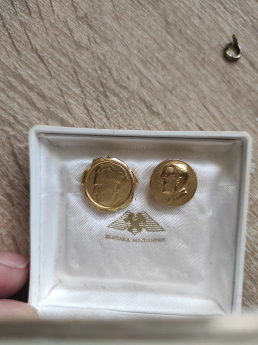 Na prodaju TITO PRIBADACE,POZLACENE.IZA PISE ODOBRENJE - 26/56 )ne znam sto znaci,ali definitivno pozlaćena, provjereno kod zlatara.Teske su 4 grama svaka i stvarno sacuvane,stare preko 50 godina.Saljem postom ili tiskom ili u dogovoru sa kupcem, molim slati poruke na Viber ili njuskalo ili nazovite, POGLEDAJ SLIKE!!. Moguće kupiti samo jednu od dvije značke,sve po dogovoru!