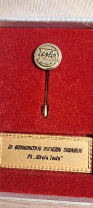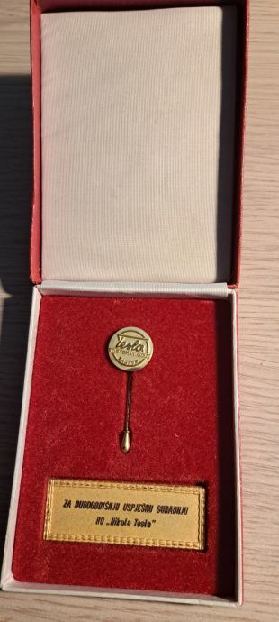 Zlatna značka RO Nikola Tesla, u kutiji s plaketom.