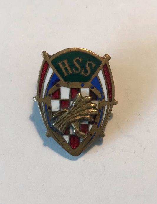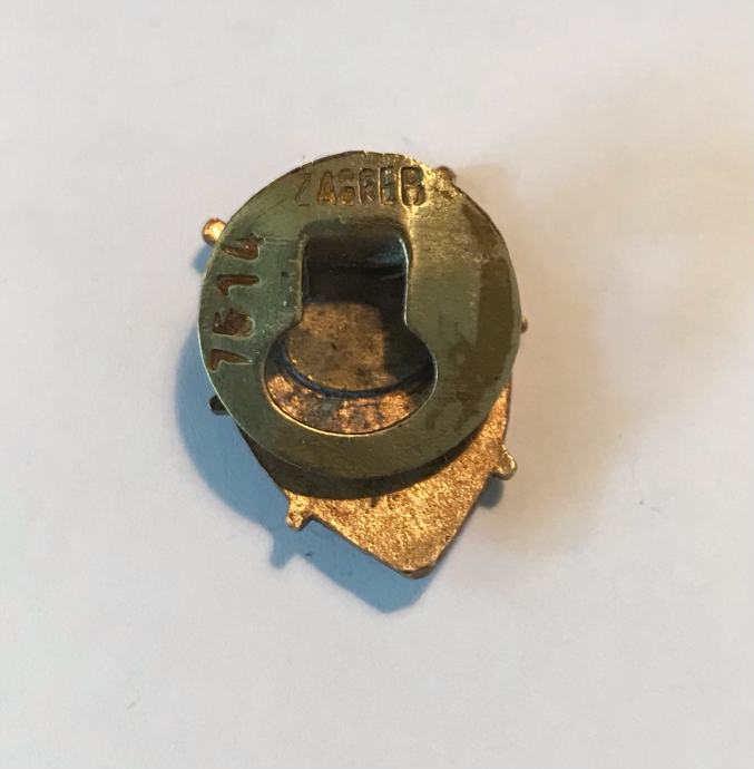 Izvorna značka HSS-a na papučicu.Na zadnjoj strani utisnuto 7514 ZAGREB.