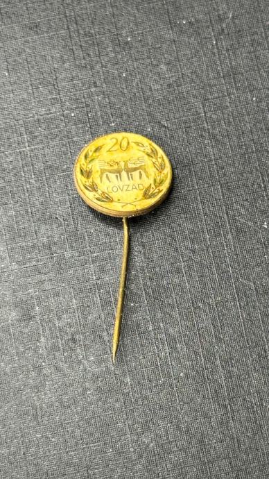 Ovaj predmet je starinska europska značka vezana uz lov ili šumarstvo, vjerojatno iz lovačke udruge ili komemorativnog događaja, s tekstom "LOVZAD" (što se u nekim slavenskim jezicima prevodi kao "Lovačka škola" ili slično) i prikazom jelena unutar ukrasnog lovorovog vijenca.