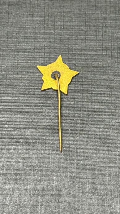 vintage značka Saveza socijalističke omladine Jugoslavije (SSOJ), omladinskog pokreta u bivšoj Socijalističkoj Federativnoj Republici Jugoslaviji. Sadrži crvenu zvijezdu, knjigu i čekić, koji simboliziraju socijalističke i obrazovne vrijednosti organizacije. Kontekst: SSOJ je bio glavni organizator omladinskih aktivnosti i dio šire socijalističke strukture u Jugoslaviji. Kolekcionarstvo: Slične značke tražene su kao povijesni memorabiliji iz socijalističkog doba regije.