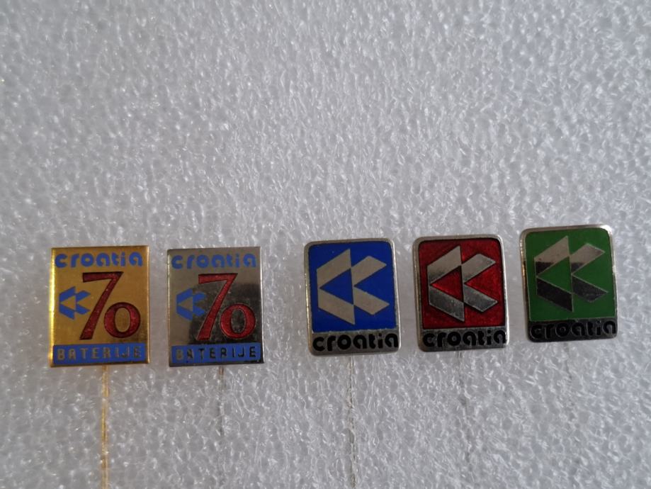 Značke - CROATIA - Baterije. Pet komada - emajlirane. Mob