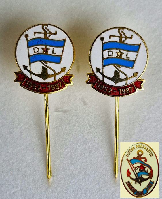Dve stare emajlirane značke Hrvatsko riječno brodarstvo Dunavski Lloyd - Sisak, jubilarne 1952 - 1987, izrada AUREA Celje.