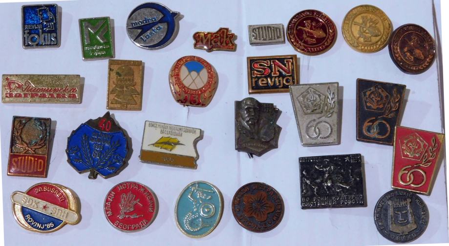 25 značaka razne tematike iz 80-tih godina. prodaja u kompletu