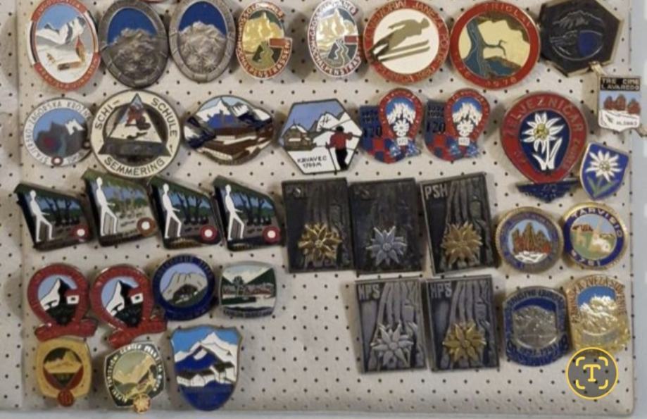 Prodajem osobnu kolekciju od ukupno točno 1000 iznimno sačuvanih starih značaka i bedževa Hrvatske, Europe, Ex Yu raznih planinarskih društava, planinarskih domova, planinarskih kuća, planinskih vrhova i kitnica za planinarski šešir ili kapu koje se nalaze poredane i složene na 7 PVC listova u registar albumu.