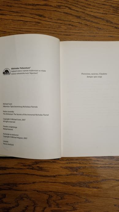 On čuva tajnu koja može značiti kraj svijeta. Istina: Nicholas Flamel rođen je 28. rujna 1330. godine u Parizu. Gotovo sedamsto godina kasnije još ga uvijek prati glas najvećeg alkemičara njegova doba. Priča se da je spoznao tajnu vječnoga života. Svi spisi navode da je umro 1418. godine. Njegova je grobnica, međutim, prazna. Legenda: Nicholas Flamel je živ. No samo zahvaljujući eliksiru života što ga proizvodi već stoljećima. Tajna besmrtnosti skrivena je u Knjizi Abrahama Židova. Upadne li ta knjiga u krive ruke, svijet će biti uništen. Upravo je to ono čemu se doktor John Dee nada i što planira učiniti čim se knjige dokopa. Ljudski rod pojma neće imati što se događa sve dok ne budem prekasno. A ako je vjerovati proročanstvu, jedini u čijoj je moći da svijet spase od potpuna uništenja su blizanci Sophie i Josh Newman. Ponekad se legende obistine. A Sophie i Josh Newman naći će se usred jedne od najvećih legendi svih vremena. Iz pera neupitnog autoriteta s područja mitologije i folkloristike, Michaela Scotta, majstora fantastike i jednog od najuspješnijih suvremenih irskih pisaca, predstavljamo još jedan od najljepših izdanaka svjetske književnosti za mlade. Prije svega čarobnu, nesvakidašnju priču o hrabrosti i odanosti na hrvatskome je ispripovijedala Marija Kostović, a naslovna ilustracija, preuzeta s originalnog izdanja, djelo je Michaela Wagnera.