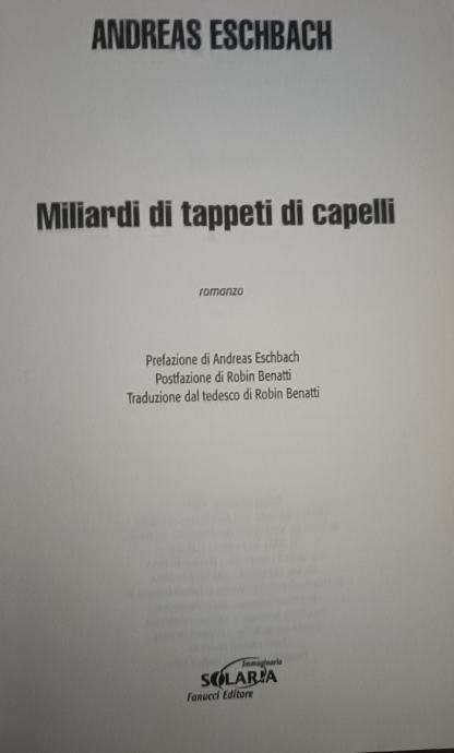 Roman njemačkog pisca znanstvene fantastike, Andreasa Eschbacha : Die Haarteppichknüpfer iz 1995. godine, u talijanskom prijevodu.