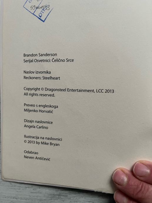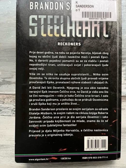 Knjiga Čelično srce Brandon Sanderson, koja je dio serijala Osvetnici. Knjigu je objavila izdavačka kuća Algoritam.