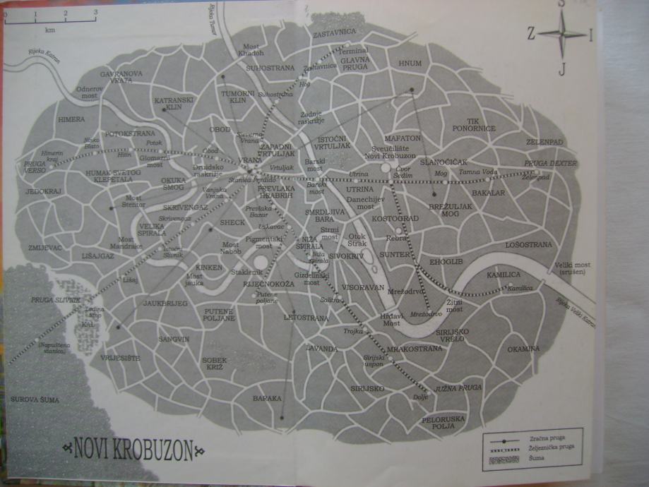 "Novi Krobuzon je milijunska metropola u nekom izmaštanom svijetu iz, recimo, paralelne povijesti. Ili našem svijetu kakav je mogao biti, ili kakvog ste mogli sanjati, svejedno. Ljudi i mutanti i tajanstvene rase vode svoje poslove u tmini ispod njegovih dimnjaka, dok rijeka lijeno odnosi otpadne vode, a tvornice i ljevaonice rade danju i noću. Tijekom više od tisuću godina, Parlament i njegova brutalna militia vladaju željeznom rukom nad šarenom gomilom radnika, umjetnika, uhoda, vojnika, mađioničara, drogeraša i kurvi.